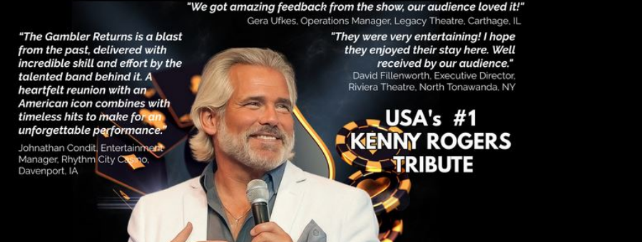Join us as award winning country recording artist, Alan Turner, recreates the magic of a night with Kenny in the Gambler Returns. This full band top production show will take you on a musical journey through the career of an American Icon and Legend that sold over 120 million albums worldwide and racked up some 24 No. 1 hits. Get your tickets today.